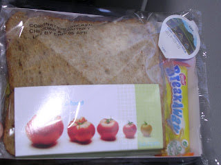 Un petit casse-croute pendant le vol. J'ai mangé le sandwich que j'avais préparé avant de partir dans le vol suivant. Du coup j'ai du refuser le premier repas. Un coup de chance peut-être, puisque le gars qui a eu droit au plateau qui m'était d'abord destiné a vomi!
